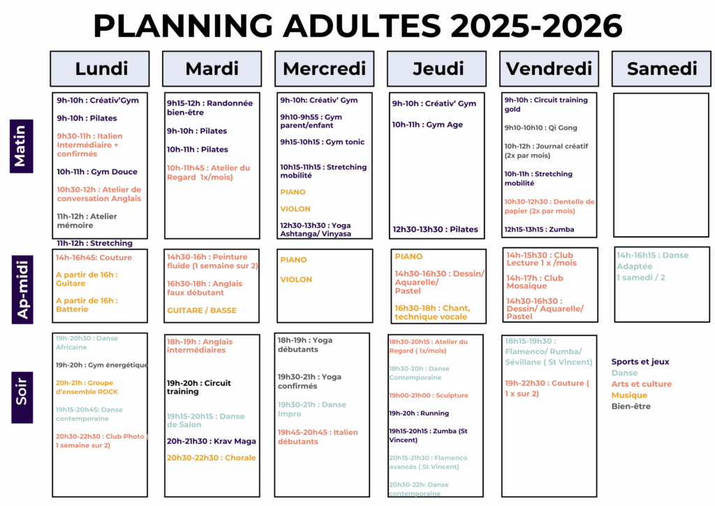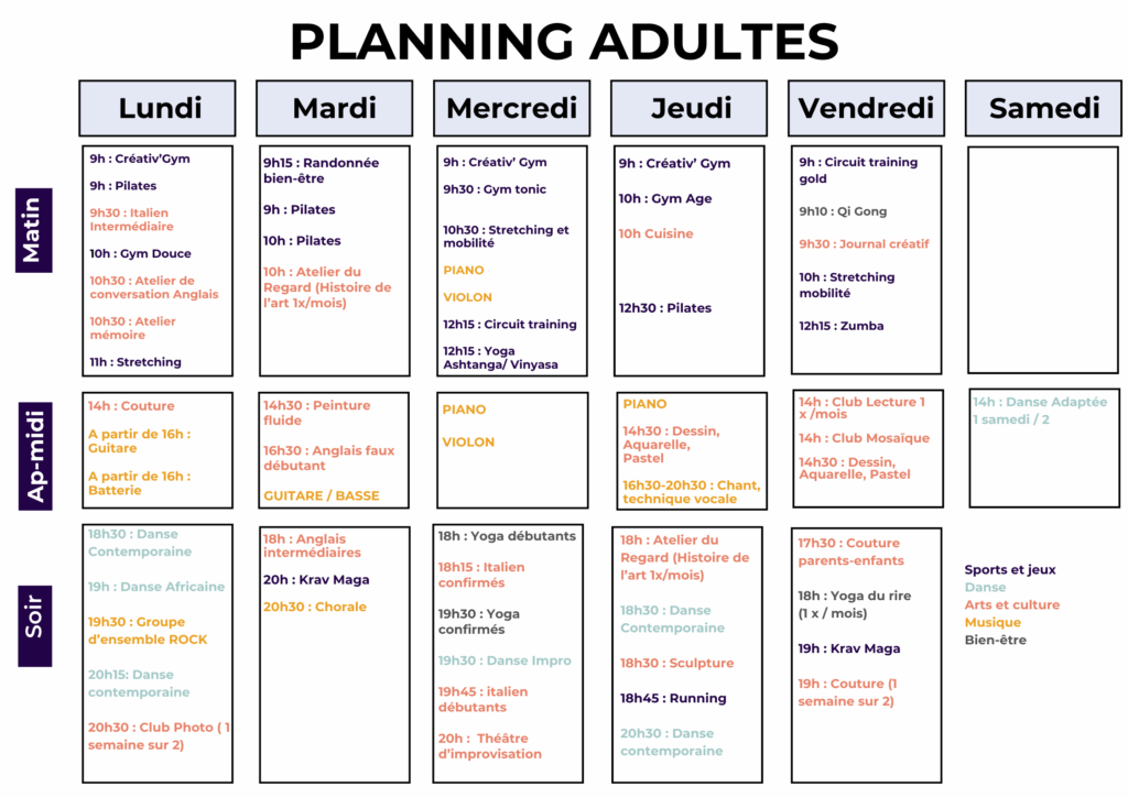 Un professeur ou un animateur prestataire absent. rattrapera son cours aux heures et créneaux qu’il lui sera possible de réserver. Les adhérents seront prévenus par mail ou par téléphone de ces changements. En cas d’absence de plus de 3 semaines d’un animateur, il sera proposé un avoir ou un remboursement. Si un adhérent est absent à son cours qui n’a lieu qu’une fois par semaine, ce dernier ne sera pas remplacé. Les tarifs sont calculés après déduction des vacances scolaires.