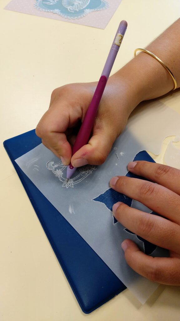 C’est une technique artisanale qui consiste à travailler un papier spécial (appelé papier parchemin) en le dessinant, le gaufrant, le perforant, et parfois en le colorant… pour obtenir des créations d’une finesse incroyable !