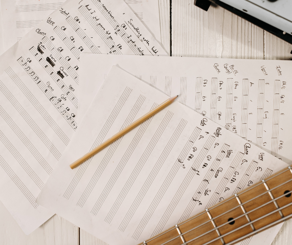 Cahier de musique (partitions vierges) à prévoir
