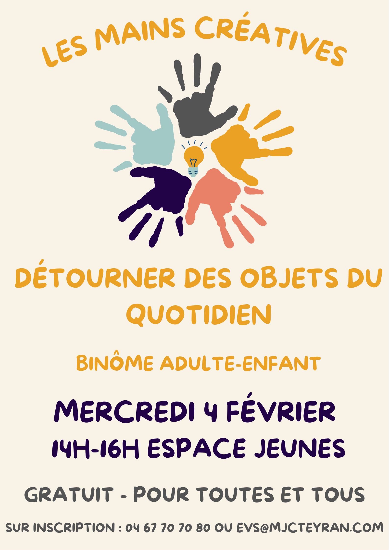 Mercredi 4 février : Atelier mains créatives 10h-12h à la MJC puis 14h-16h au Point Jeunes