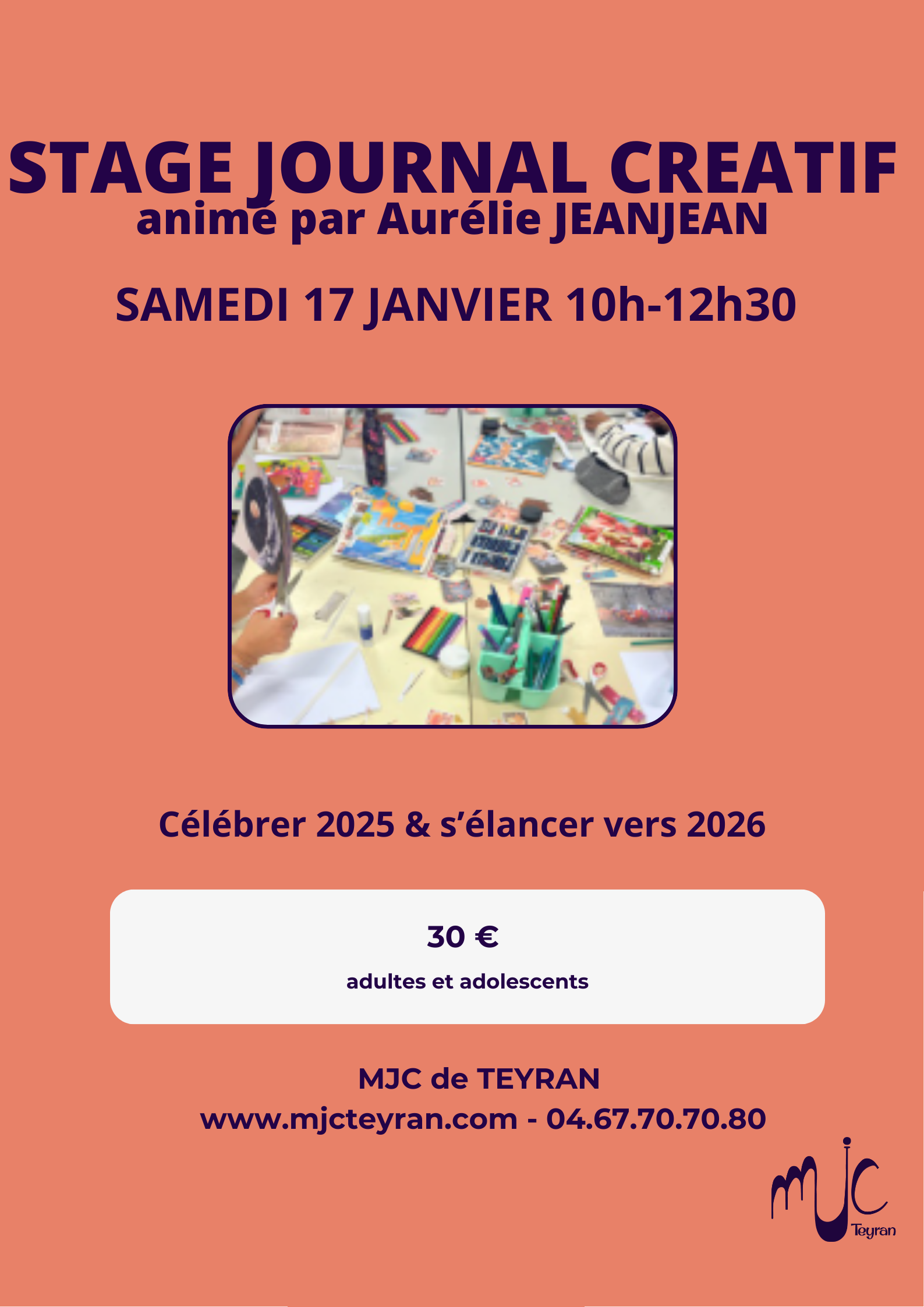 Public : adultes et adolescents Tarif : 30€ (matériel inclus) En ce début d’année, offrez-vous une parenthèse inspirante à la MJC de Teyran. Guidée par Aurélie Jeanjean, sophrologue et accompagnatrice en Journal Créatif®, cette séance est pensée comme un moment pour se déposer, faire un bilan en toute bienveillance et ouvrir un nouvel espace … |