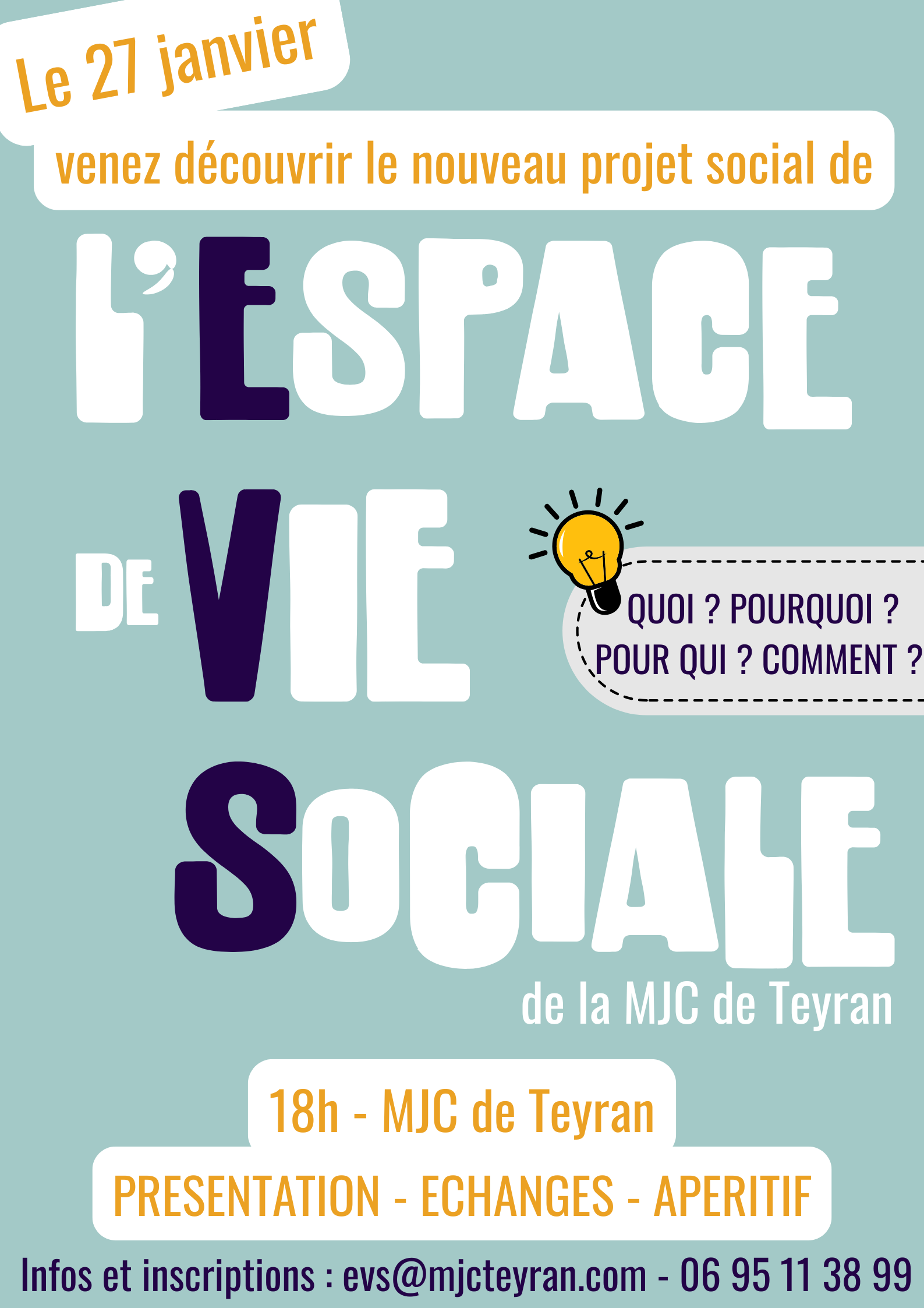 Nous vous invitons à venir en apprendre plus sur l’Espace de Vie Sociale Trait-D-Union de la MJC de Teyran. Durant l’année 2025, nous vous avons sollicité pour participer à l’élaboration du nouveau projet social de l’Espace de VIe Sociale. Ce projet est un contrat entre nous pour faire de l’EVS un espace d’expression, d’expérimentation et … |