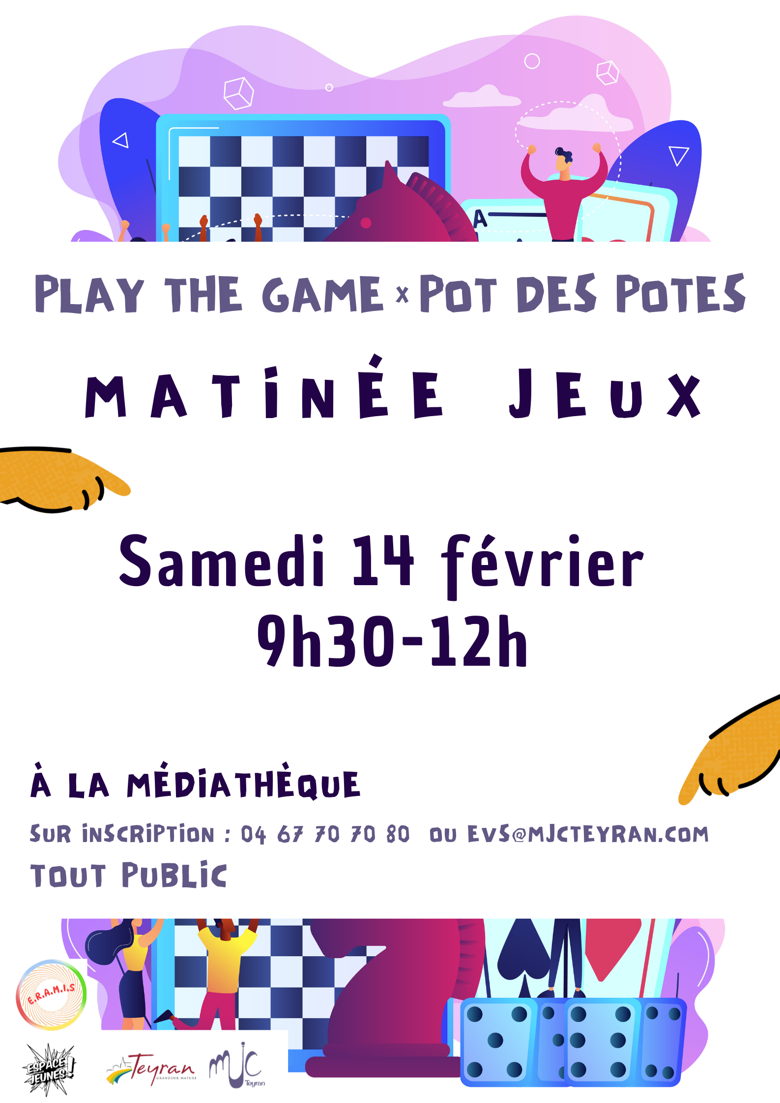 Venez vous défier, coopérer, tester, rire et explorer une sélection de jeux de société, en bois, pour tous les goûts ! Au rendez-vous : Des parents, des enfants, des potes et surtout des échanges. Infos et inscriptions auprès de Clémentine : evs@mjcteyran.com ou 06 95 11 38 99. |